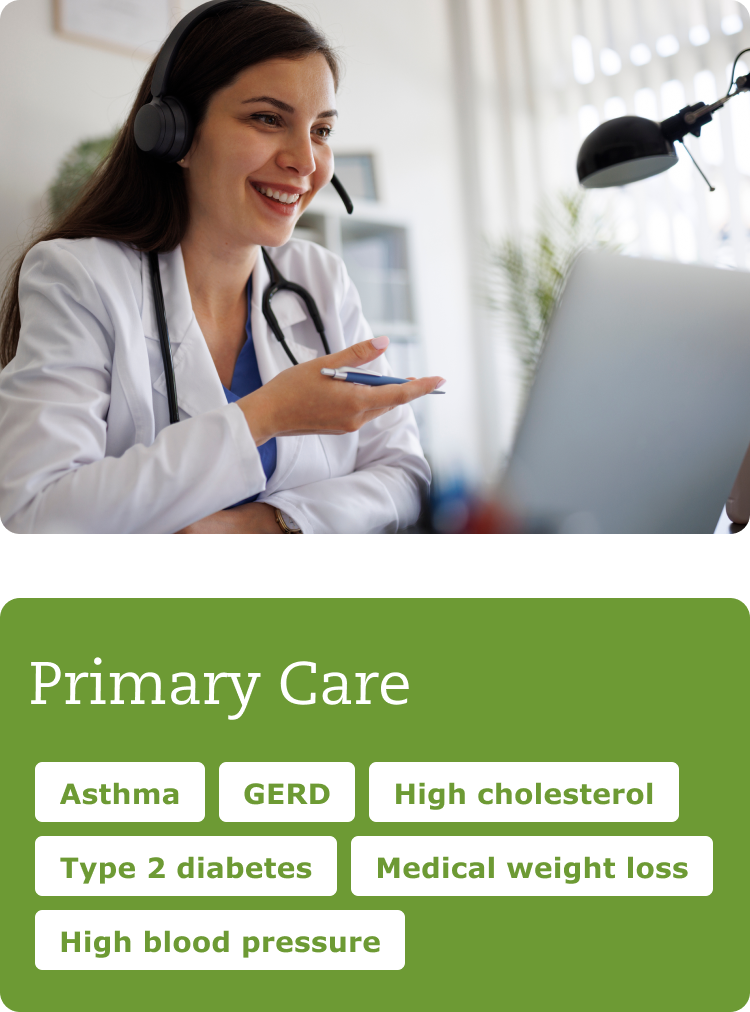 Get comprehensive care for acute illnesses and ongoing care management for chronic conditions—all from the comfort of home.