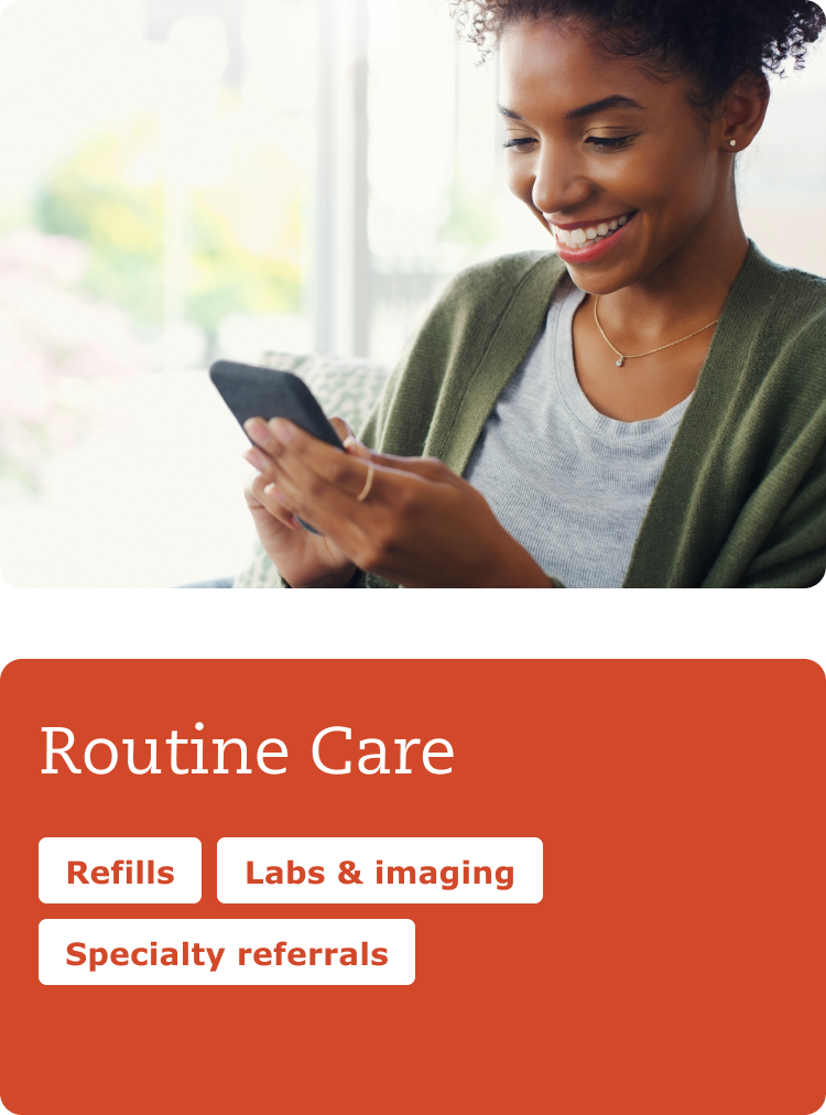 Get comprehensive care for acute illnesses and ongoing care management for chronic conditions—all from the comfort of home.